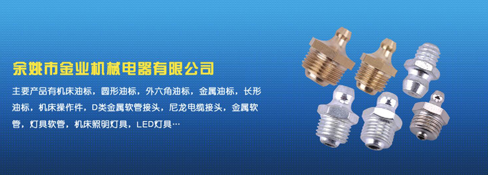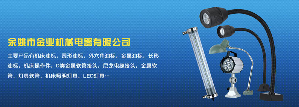 余姚市金業(yè)機(jī)械電器有限公司主要產(chǎn)品有機(jī)床油杯,圓形油標(biāo),外六角油標(biāo),金屬油標(biāo),長(zhǎng)形油標(biāo),機(jī)床操作件,D類金屬軟管接頭,尼龍電纜接頭,金屬軟管,燈具軟管,機(jī)床照明燈具,LED燈具,DGT型線路軟管防護(hù)套,TL型鋼制電纜手軌,電纜尼龍拖鏈,可調(diào)塑鋼冷卻管等產(chǎn)品,規(guī)格齊全,全部自制。望國(guó)內(nèi)外客戶前來(lái)考察:共同發(fā)展…